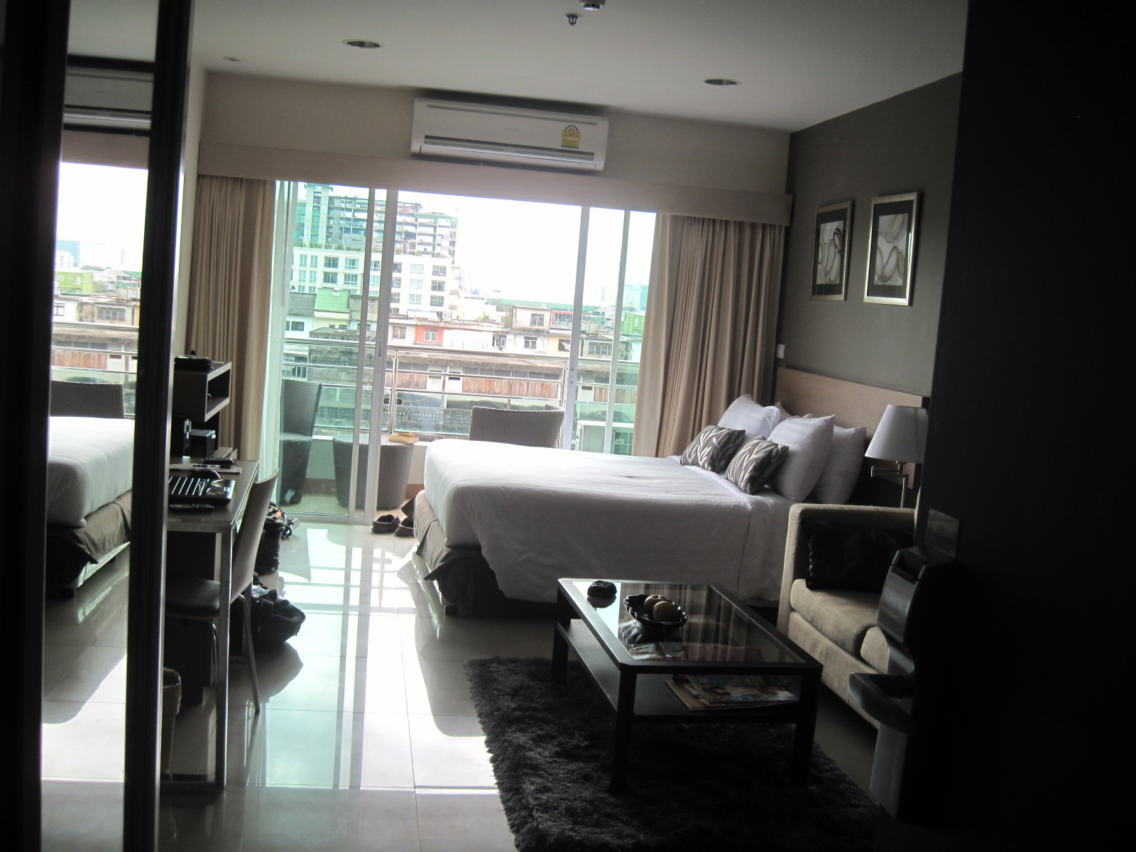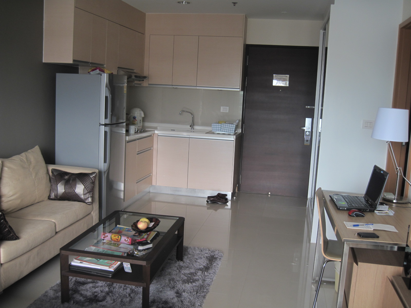 sized balcony with a couple nice chairs and a table. Oh ya and unlike my home Viva Garden offers daily maid service. There is a jumbo sized outdoor pool and in the same area is a gym, a play area for the kids, along with a do it your self laundry or they will do it for you.Also available are single and multi bedroom units.